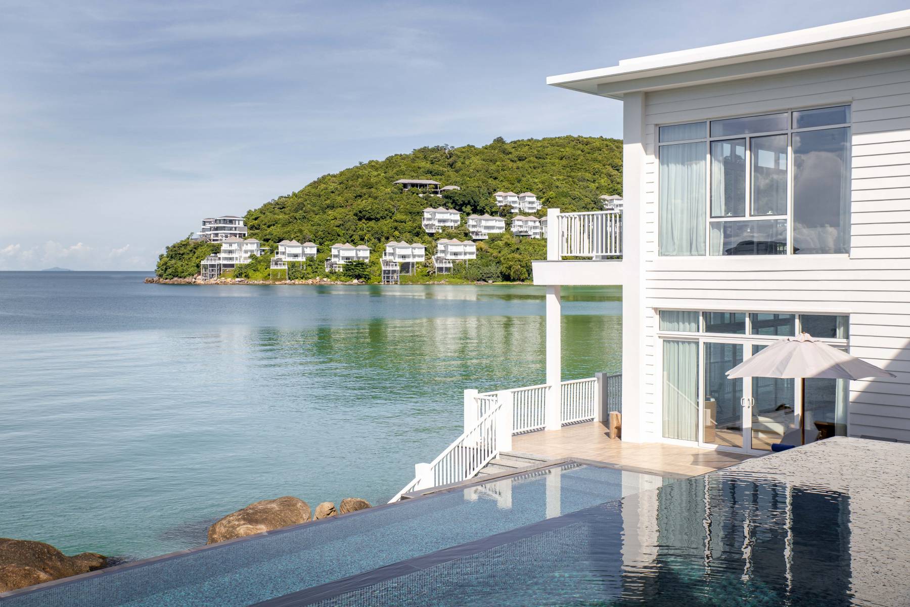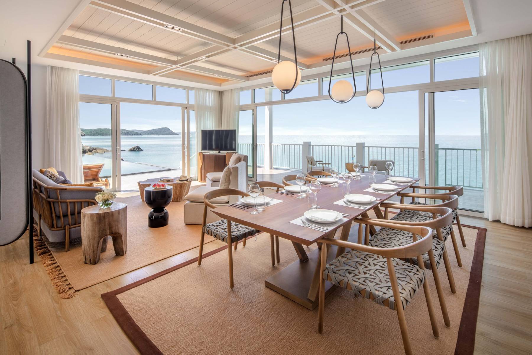 Located steps from the beach, each five-bedroom, two-tier infinity pool villa boasts panoramic sea views accompanied with a personalized butler service, while also having exclusive access to a private beach. Guests can also enjoy oceanic views from each bedroom in the villa. The 800 sqm luxurious villa complex is architecturally designed in harmony with two connected villas, offering an expansive indoor & outdoor living space. Featuring two sunlit master bedrooms, two stylishly furnished living rooms, a fully equipped kitchen, and lounges by the state of the art two-tier infinity pool & jacuzzi. This unique villa is perfect for family, business, and social gatherings.